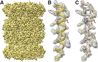 What I didn't know, as I'm not a structural biologist and hadn't been paying enough attention, was that the resolution that can be achieved by cryo-EM has improved dramatically in recent years. According to Ramakrishnan, this improvement in resolution is due to a few key developments. One is development of better detectors. Other developments concern how the data are processed to solve the structure and they include introduction of Bayesian statistics and correcting for the movements of the molecules induced by the electron beam and so on. These developments have been documented in several recent reviews. (For example, [1], [2], and [3]. Notice that words like "revolution" and "new era" are used in the titles. Also see a couple of very recent articles[4,5].)